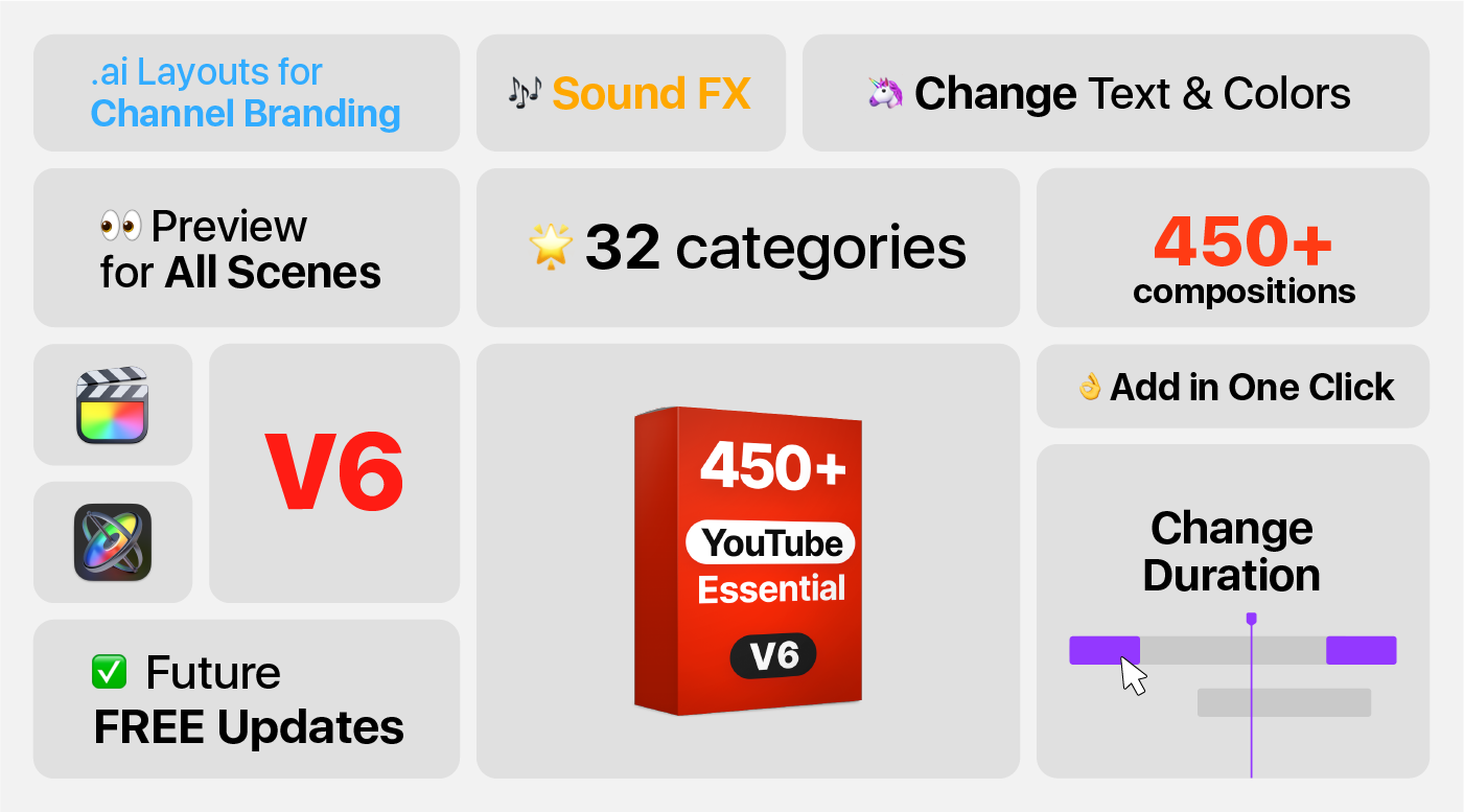 Our bestseller is a number one item and now available for After Effects, Premiere Pro, Final Cut and even Davinci Resolve. All parameters could be edited in a few minutes. Adjust colors so they match your identity and all that is left for you is to shoot your video!